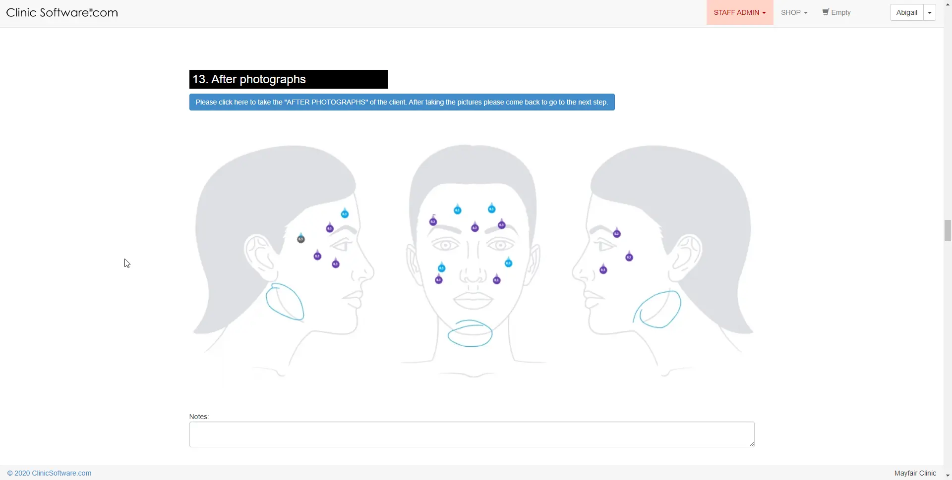 Samuti saate joonistada kortsud ja jooned näole ja kehale, et registreerida nende asukohta ja jälgida nende arengut.